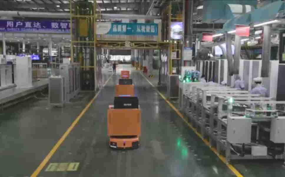 为车载冰箱物流配送打造的智能解决方案,,,包含产中物流通过潜伏举升AMR搬运至线边,,,,产后成品物流智能仓储,,,,流程包含产中物流智能齐套入库,,线边安灯叫料AMR智能配送至线边,,,成品入库、、、、出库,,,,通过无人堆高车机器人,,智能仓储管理替代人工作业管理,,,实现更高存储、、更高效率、、更具柔性化的解决方案。。。